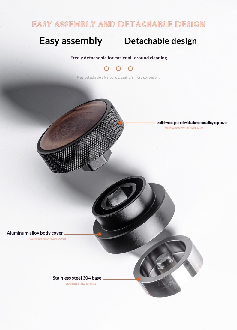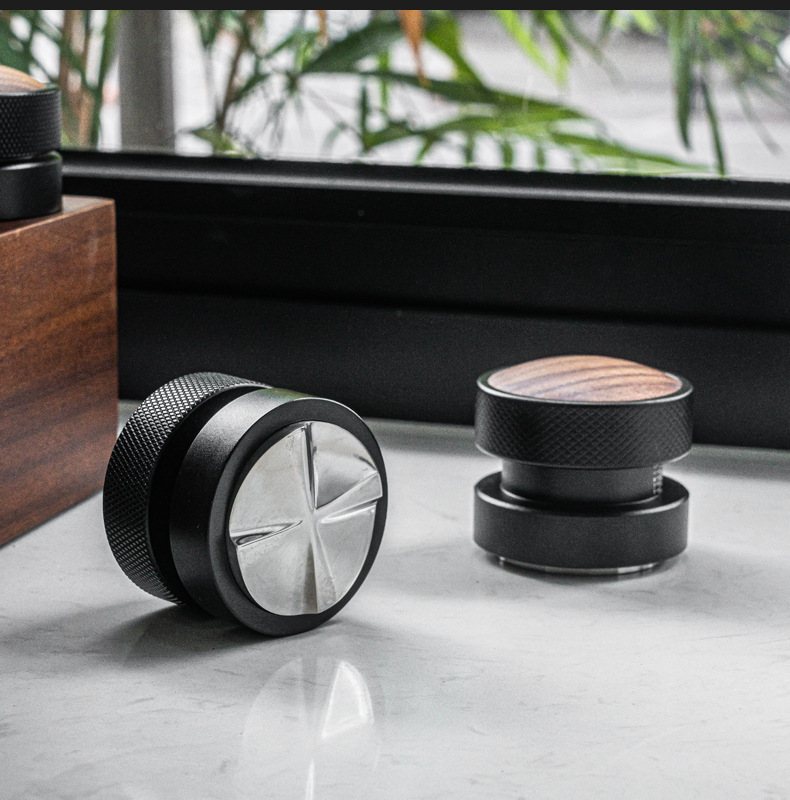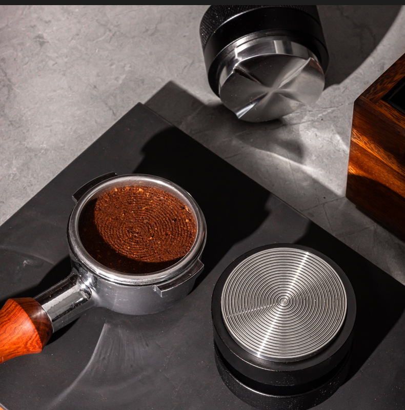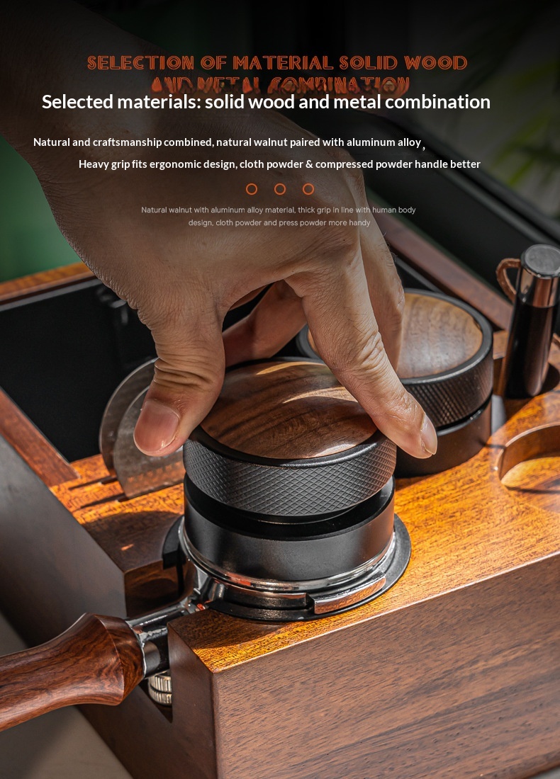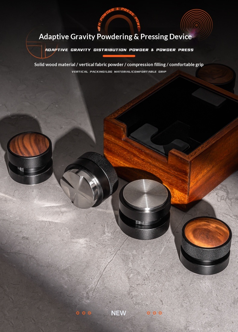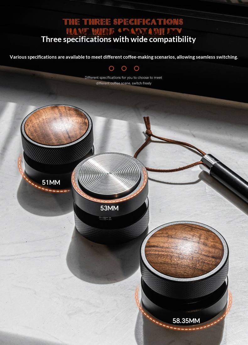Color: solid wood gravity coffee distributor-51mm-black four leaf bottom, solid wood gravity coffee distributor-53mm-black four leaf bottom, solid wood gravity coffee distributor-58.35-black Four Leaf bottom, solid wood elastic powder press-51mm-black line bottom, solid wood elastic powder press-53mm-black thread bottom, solid wood elastic powder press-58.35-black thread bottom